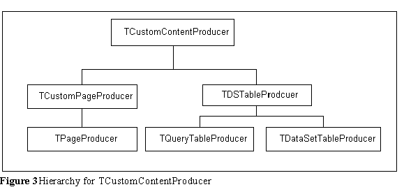 TDataSetTableProducer/TQueryTableProducer The TDataSetTableProducer and the TQueryTableProducer components enable you to generate HTML tables from data accessed through Delphi's database components. Both components descend from the TDSTableProducer class and perform almost identically. Indeed, their function at design time will be identical as long as the TQuery attached to TQueryTableProducer contains a valid SELECT call in its SQL property. These table generators are of course limited by the capabilities of the HTML specification, but they can nevertheless provide total control over the appearance of an HTML table. At design time, the TDSTableProducer allows you complete control over its appearance. Attach a dataset to the component with the DataSet property. You can set its caption's text and alignment with the Caption and CaptionAlignment properties, respectively. The Header and Footer properties allow you to add HTML code before and after the table. At runtime you might use other content producers to create HTML code to put around the table in order to embed the table in a complete web page. The RowAttributes property allows you to set the properties of the tables rows.